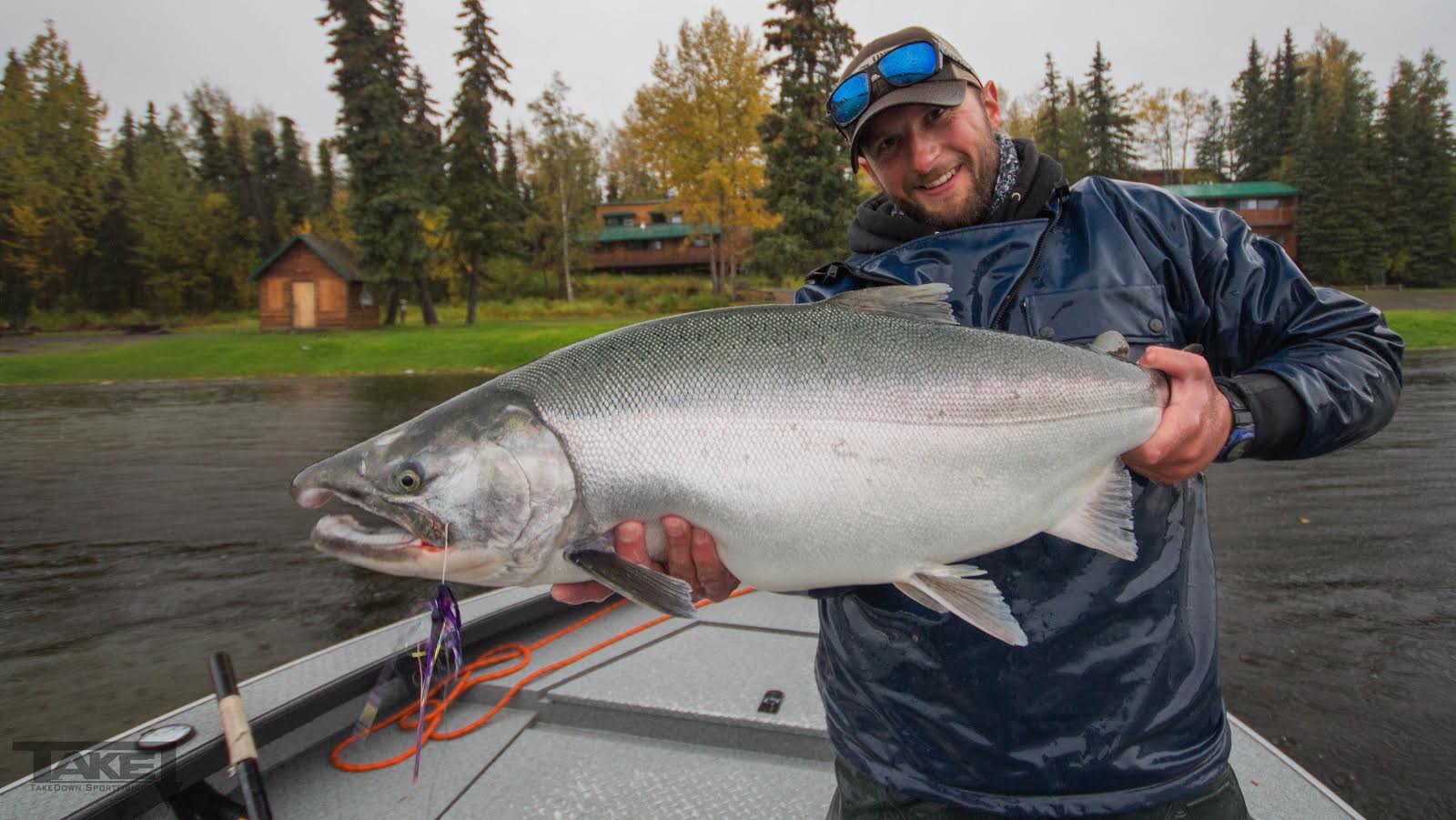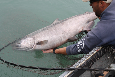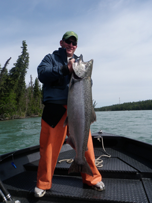 The start of the ‘2nd run’ officially begins on July 1st with the elimination of the slot limit. A typical second run Kenai King is 35 to 40lbs. July is when we usually encounter the largest fish of the season with many fish in the 50 to 60lb size class. Each year we tangle with a couple true Kenai trophies, some fish pushing beyond the 70lb mark!